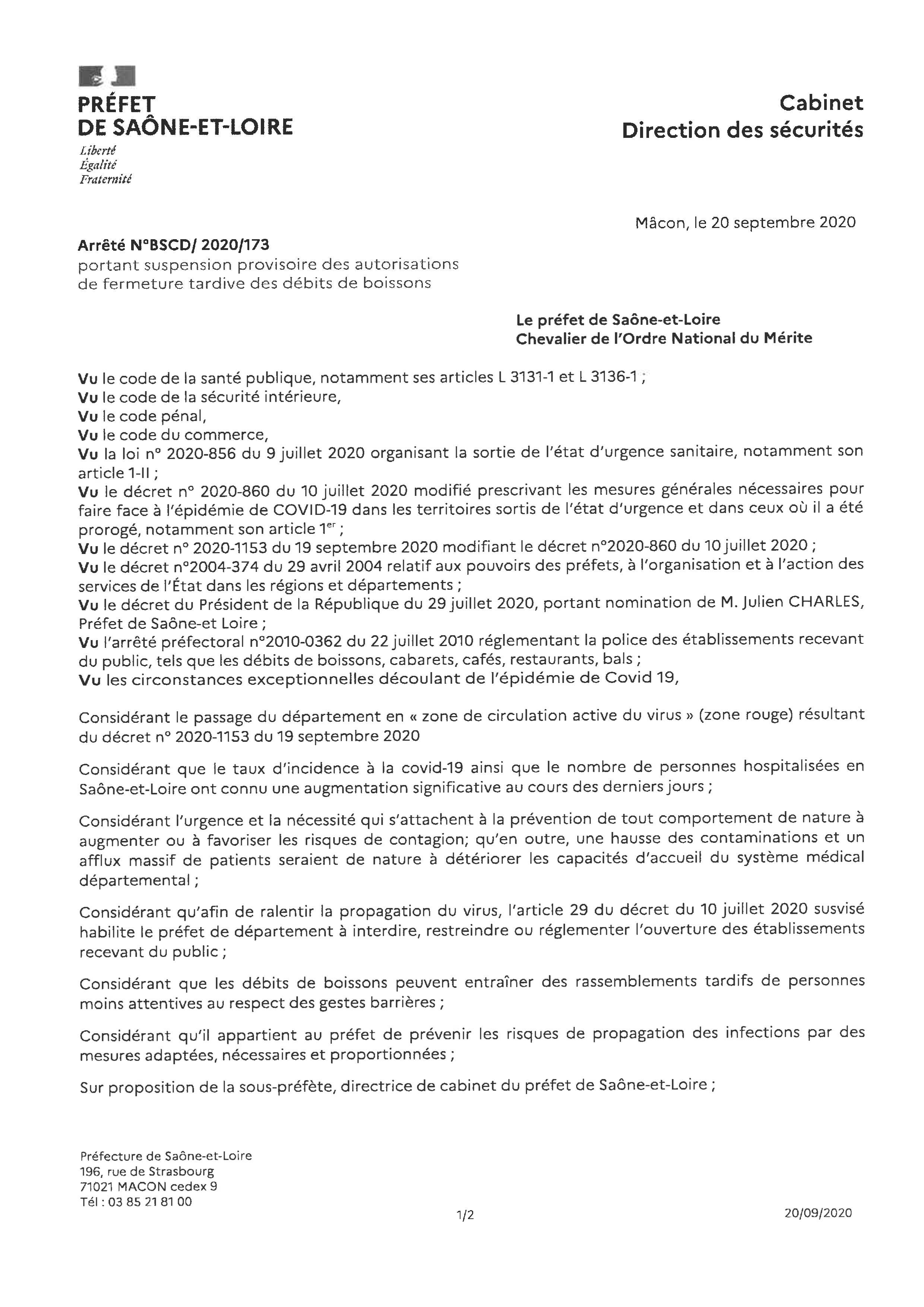 SUSPENSION PROVISOIRE DES AUTORISATIONS DE FERMETURE TARDIVE DES DÉBITS DE BOISSONS SUSPENSION PROVISOIRE DES AUTORISATIONS DE FERMETURE TARDIVE DES DÉBITS DE BOISSONS 21 septembre 2020 admin