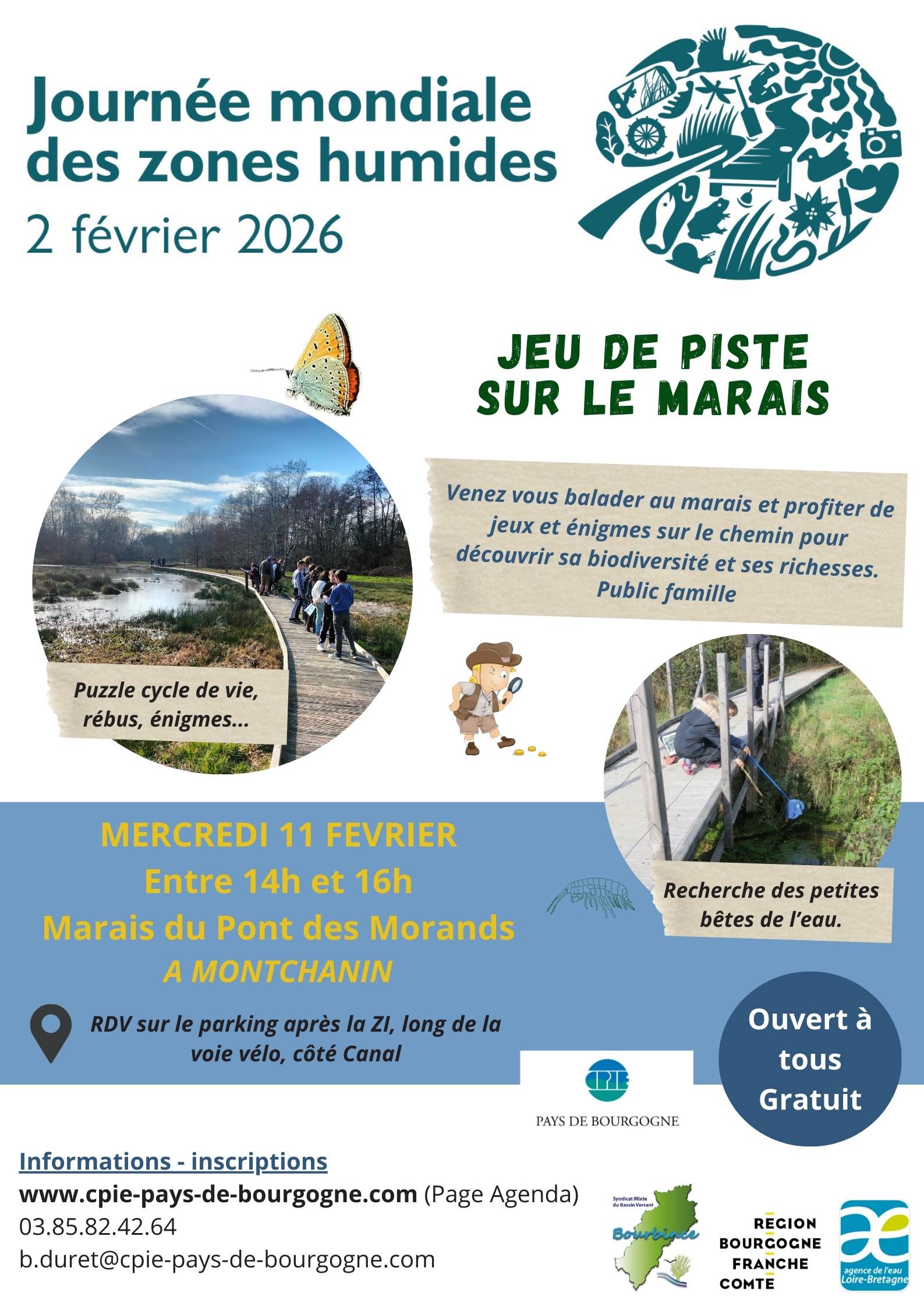 Le Syndicat Mixte du Bassin Versant de la Bourbince organise deux animations dans le cadre de la journée mondiale des zones humides en février.